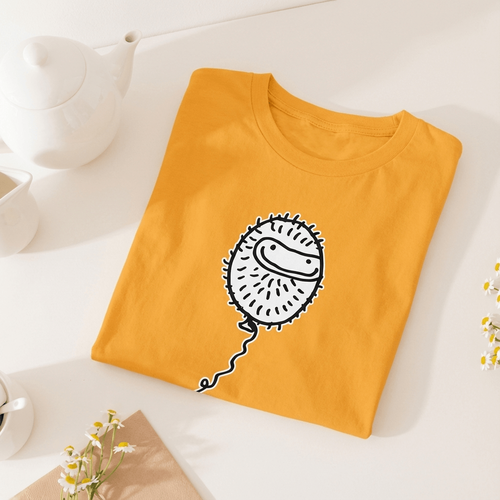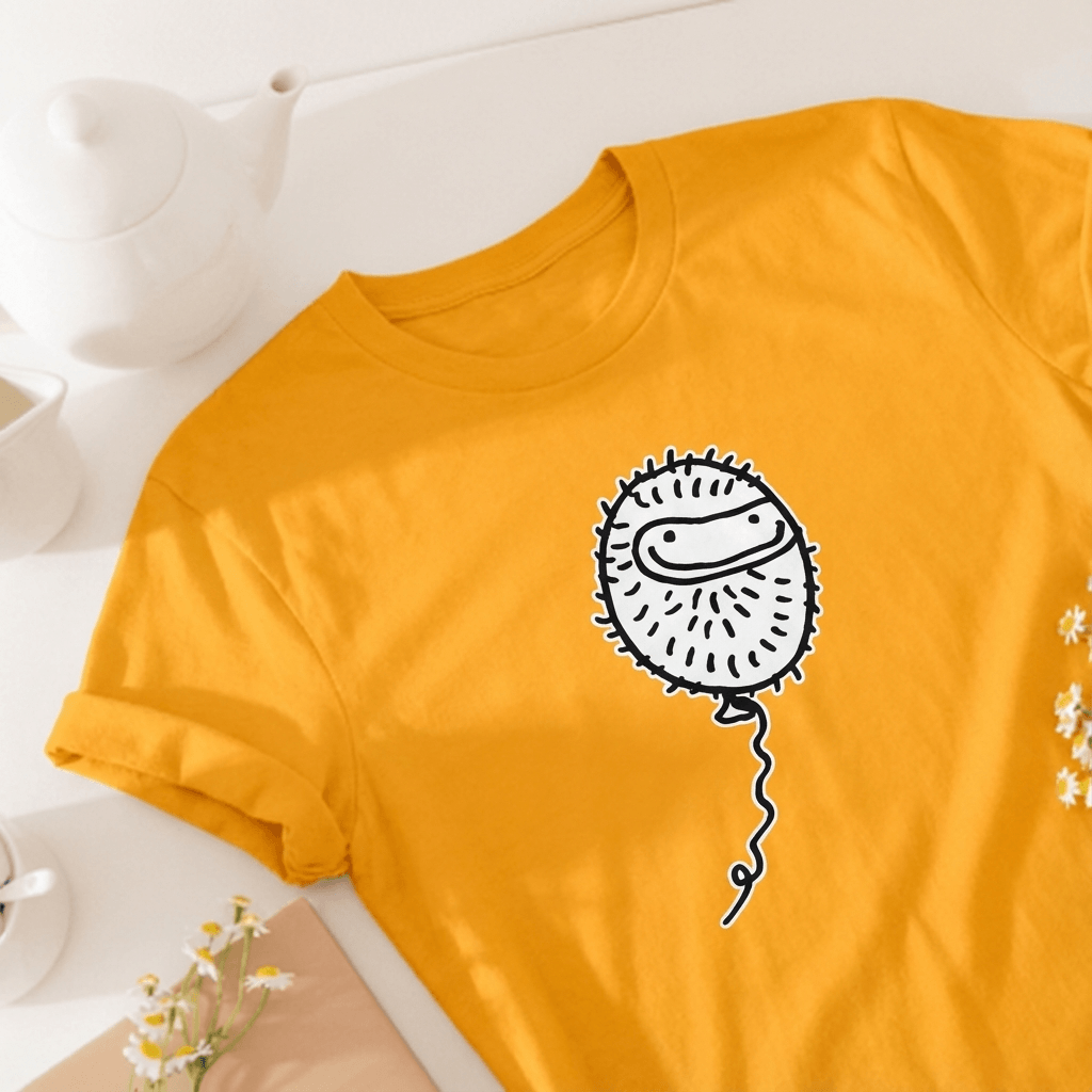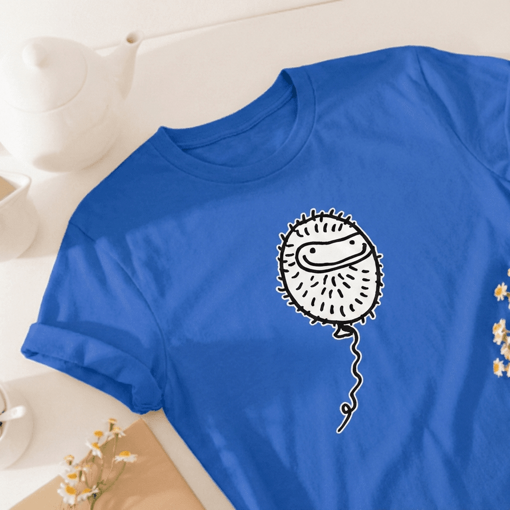 A sturdy cotton tee with a Peter illustration. For moving around, sitting still, changing plans, and everyday activity. Holds up well to normal use. Comfortable. Durable.